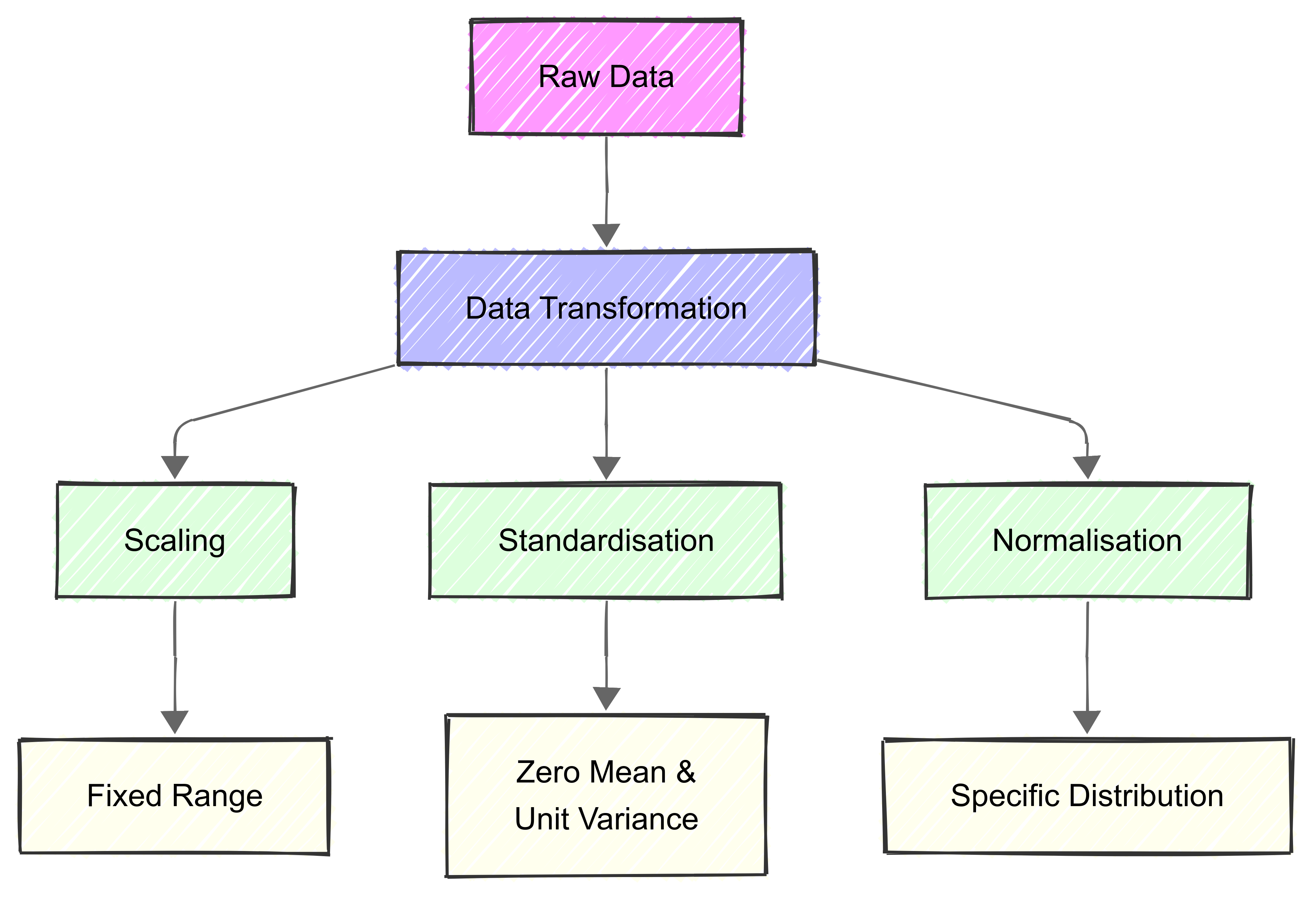 Scaling, standardisation, and normalisation are data pre-processing techniques we can use to adjust feature values for consistency and comparability.