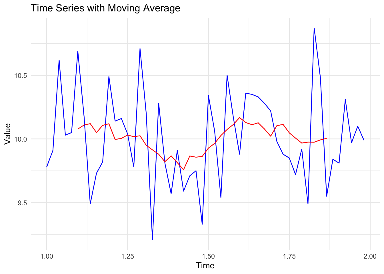 labs(x = "Time", y = "Value", title = "Time Series with Moving Average") +