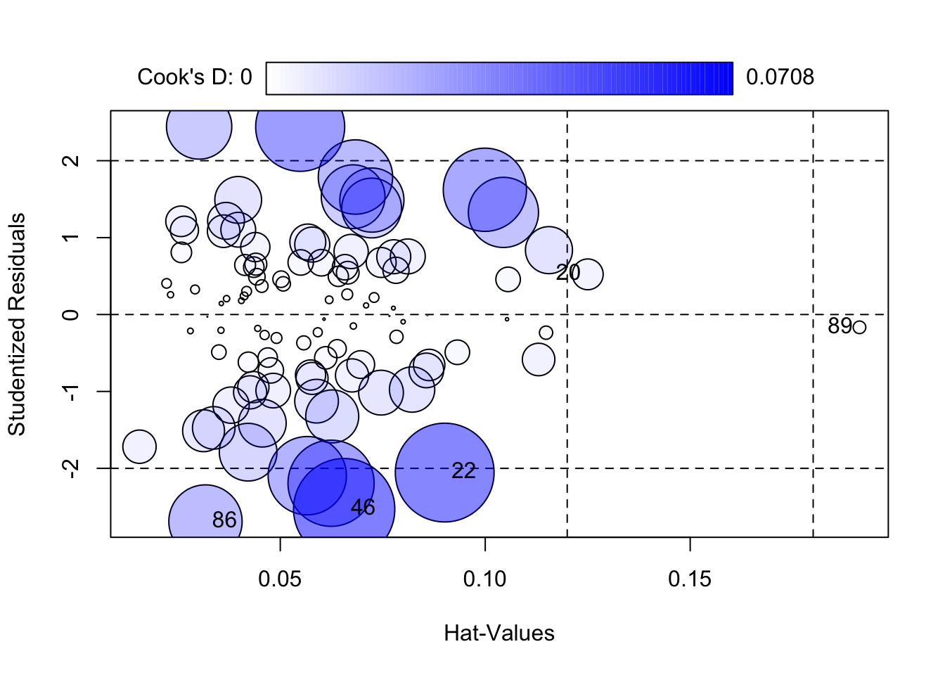 Influence Measures detect outliers that may impact results.