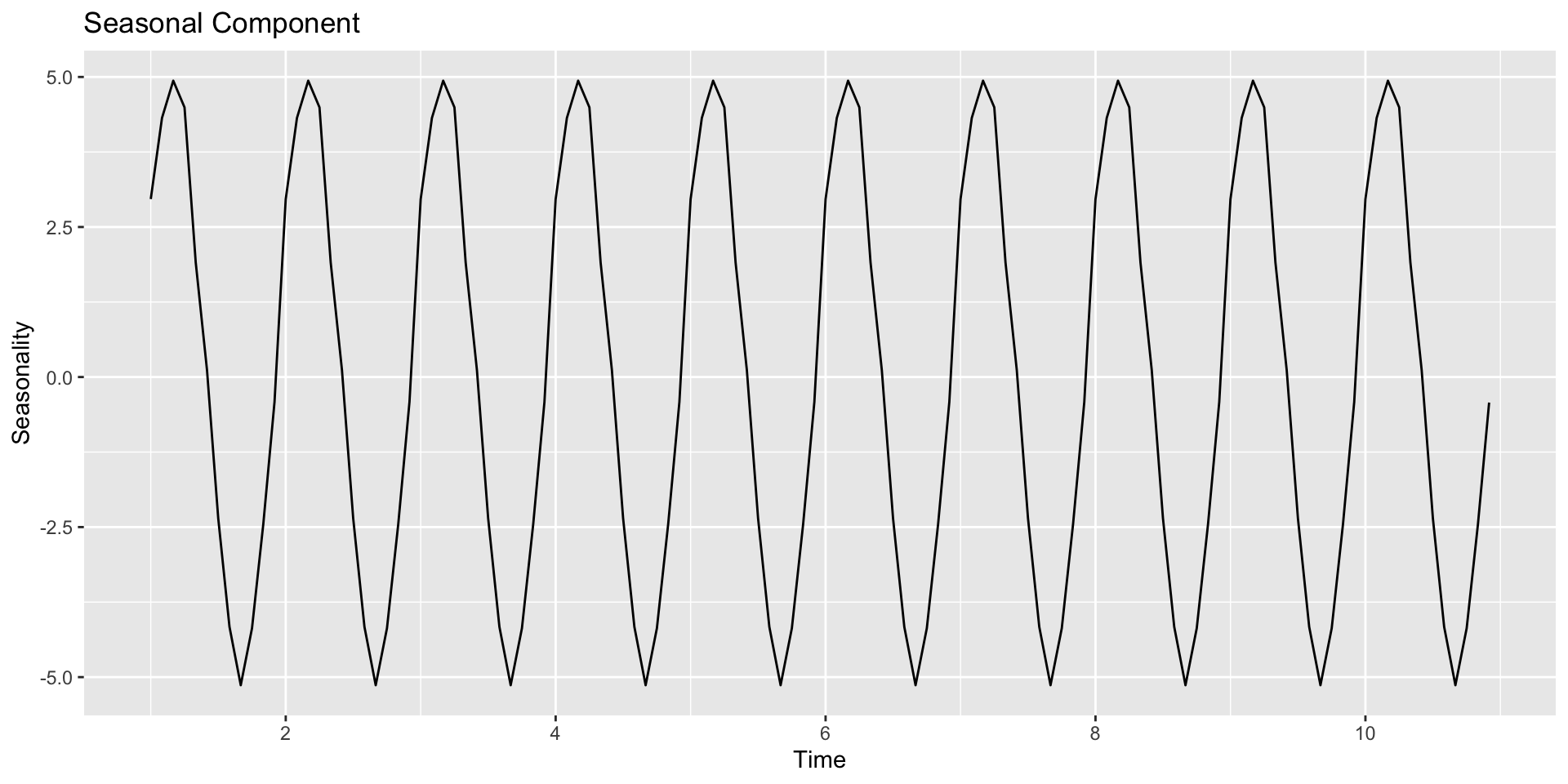 Seasonality: Regularly repeating fluctuations at fixed intervals.