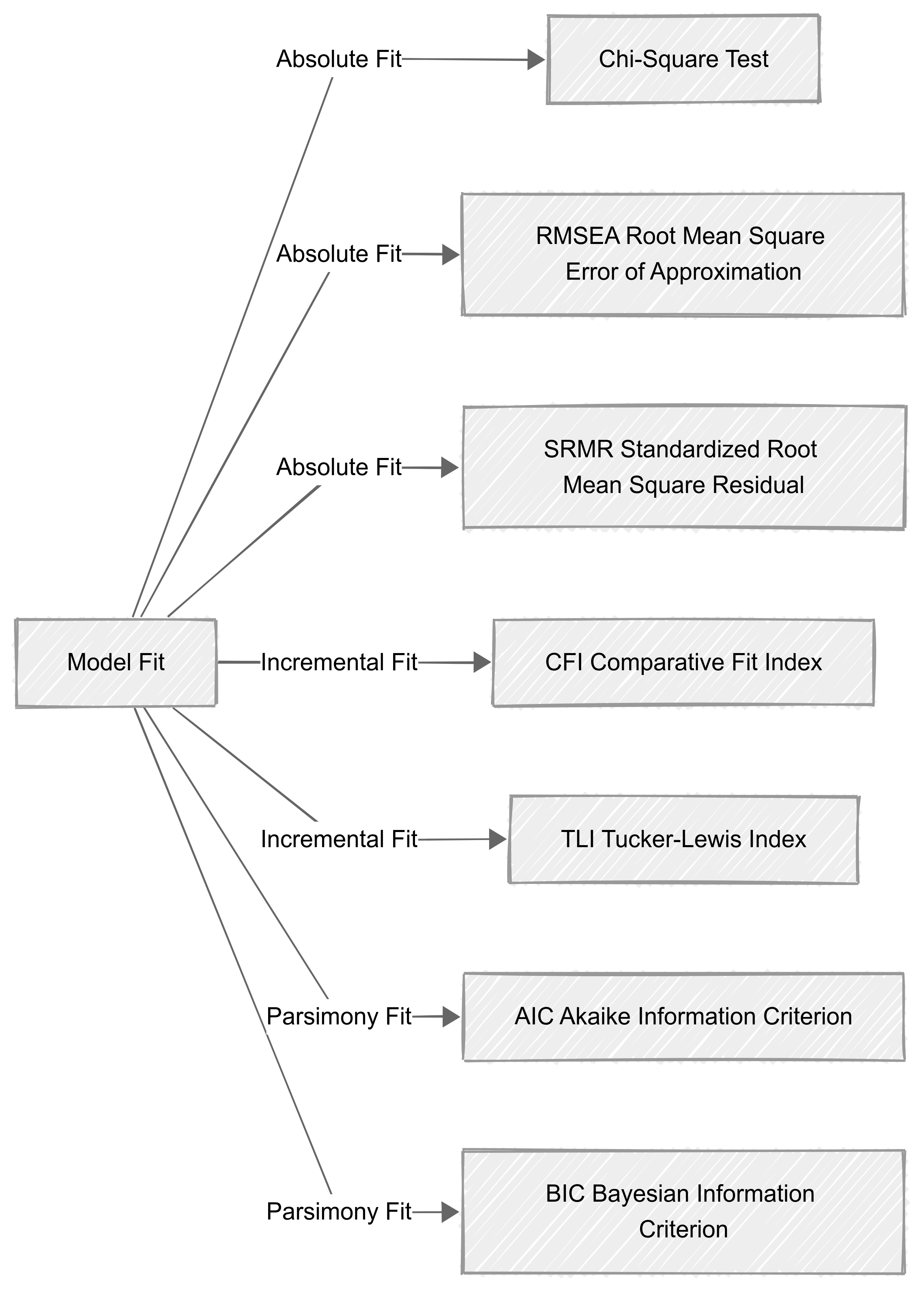 Absolute Fit: Measures how well the model reproduces observed data.