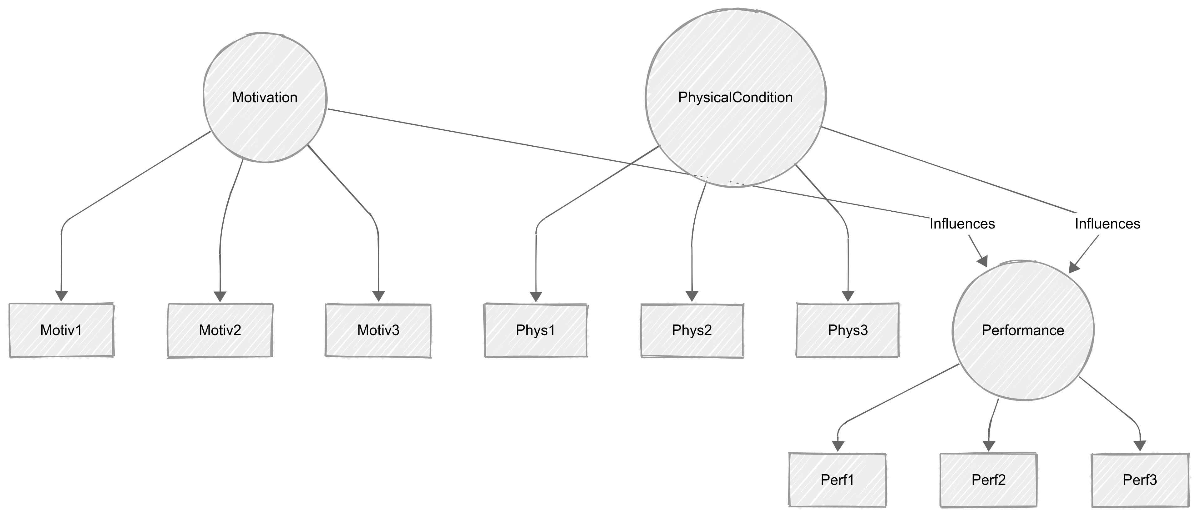 Linked Performance with Motivation and PhysicalCondition at the structural level.