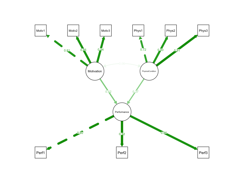 Created three latent constructs in the simulation: Motivation, PhysicalCondition, Performance.