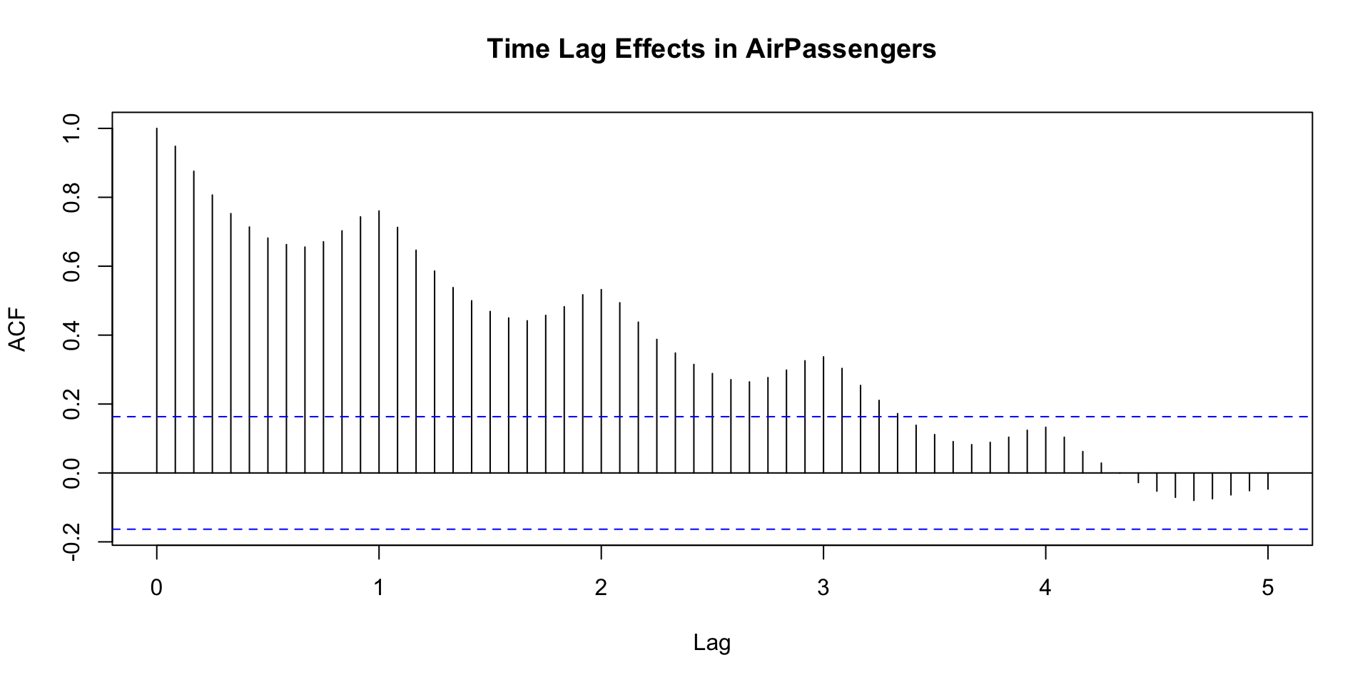 The delayed influence of past observations on current values in a time series.