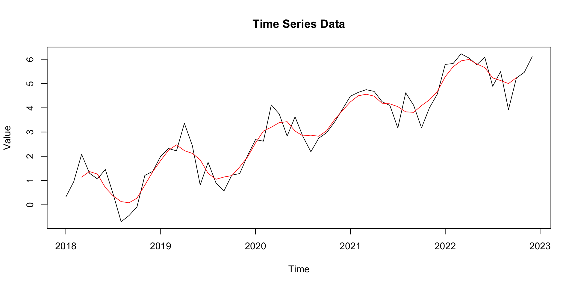 We can now visually inspect our time series data. The moving average shows the general pattern within our data.