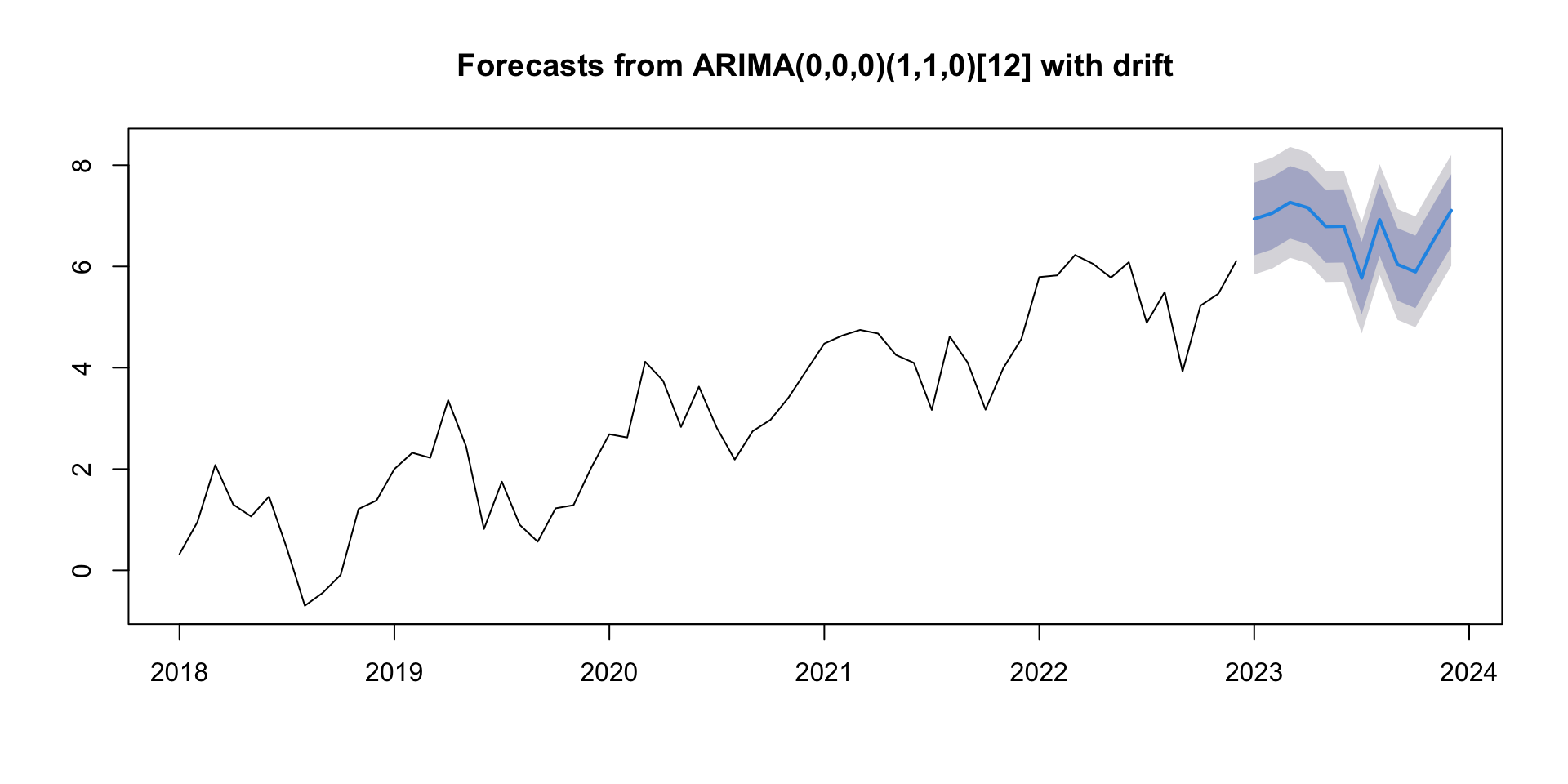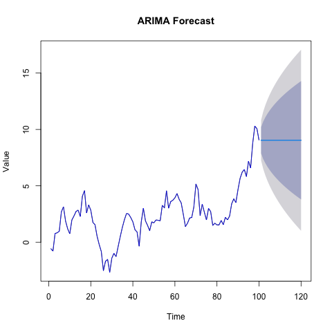 Time series analysis is often used to forecast what might happen in the future. We can use R to do this, for example by using the ARIMA model: